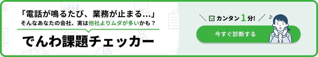 以下のコンテンツでは、貴社が抱える電話業務の課題レベルを診断できます。現状を把握するヒントとして、ぜひご活用ください。